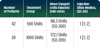 • Although actual location of the injection sites can be determined by palpation, the use of injection guiding technique (eg, electromyography or electrical stimulation, or ultrasound) is recommended to target the injection sites