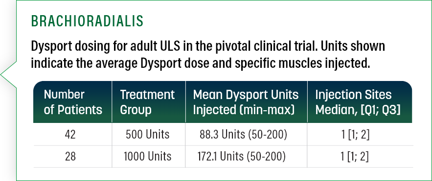 BRACHIORADIALIS Dysport 100 to 200 Units