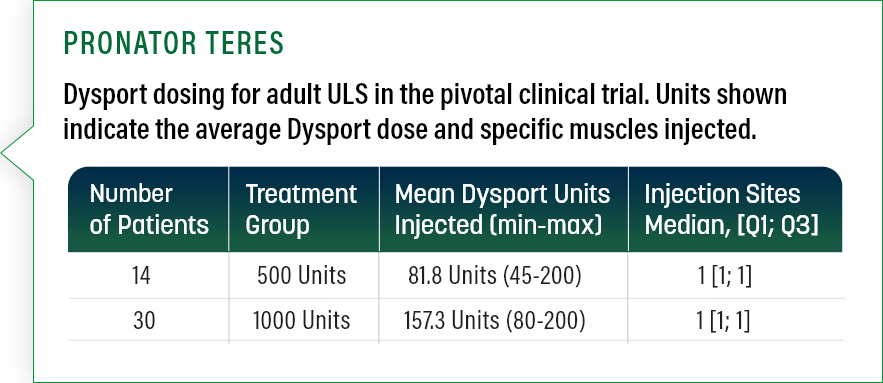 PRONATOR TERES Dysport 100 to 200 Units