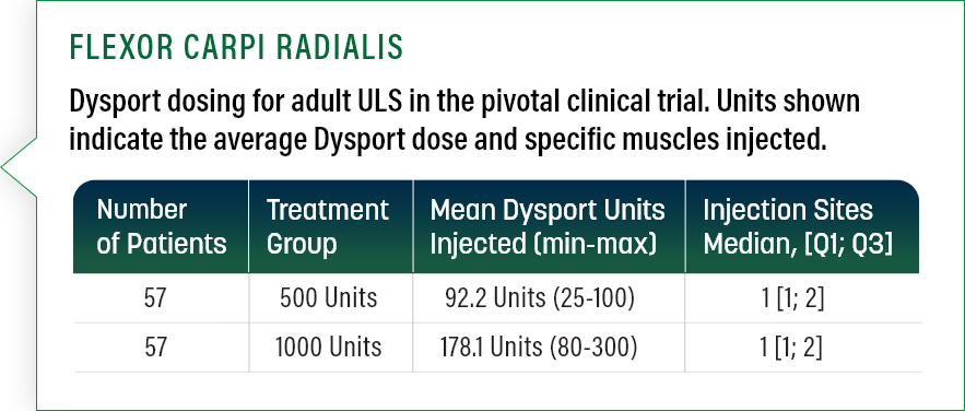 FLEXOR CARPI RADIALIS Dysport 100 to 200 Units