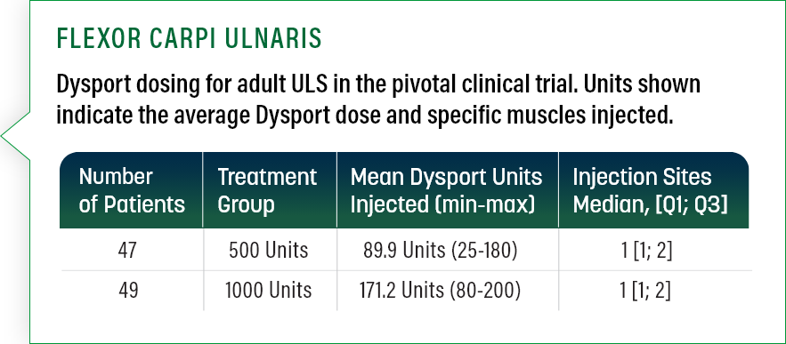 FLEXOR CARPI ULNARIS Dysport 100 to 200 Units