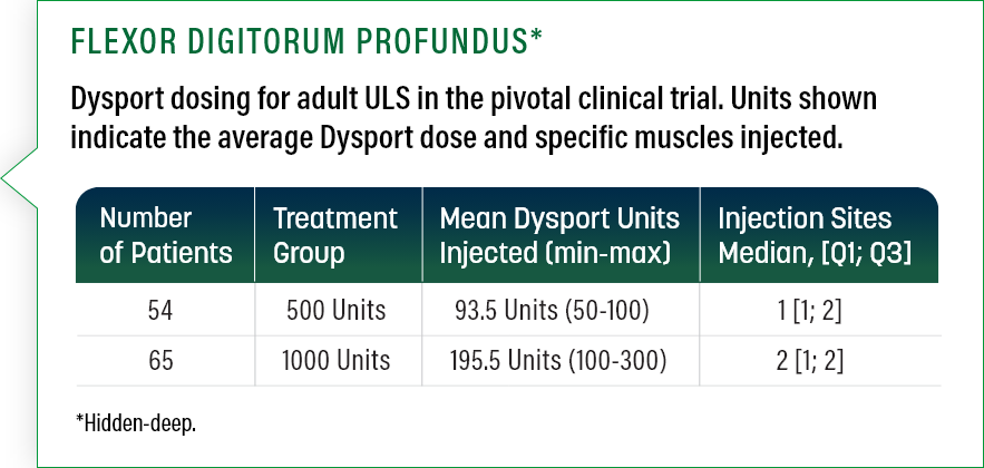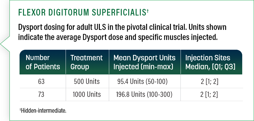FLEXOR DIGITORUM SUPERFICIALIS Dysport 100 to 200 Units