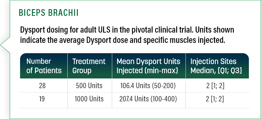 BICEPS BRACHII Dysport 200 to 400 Units