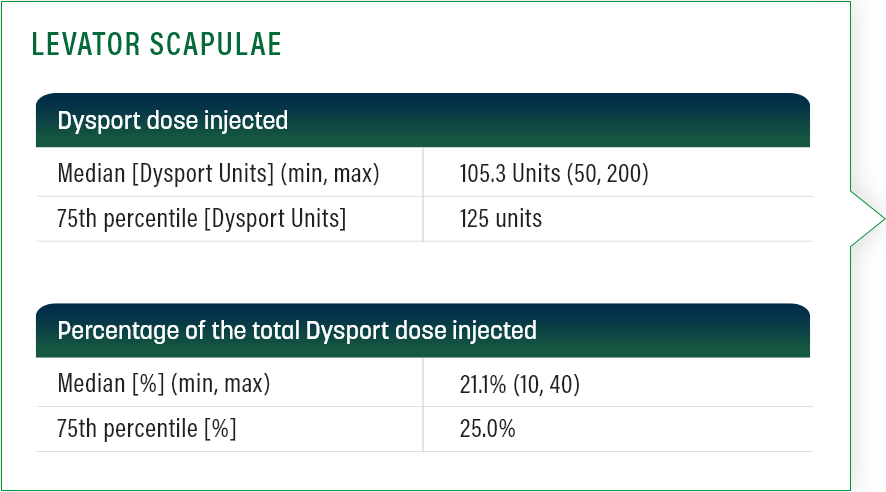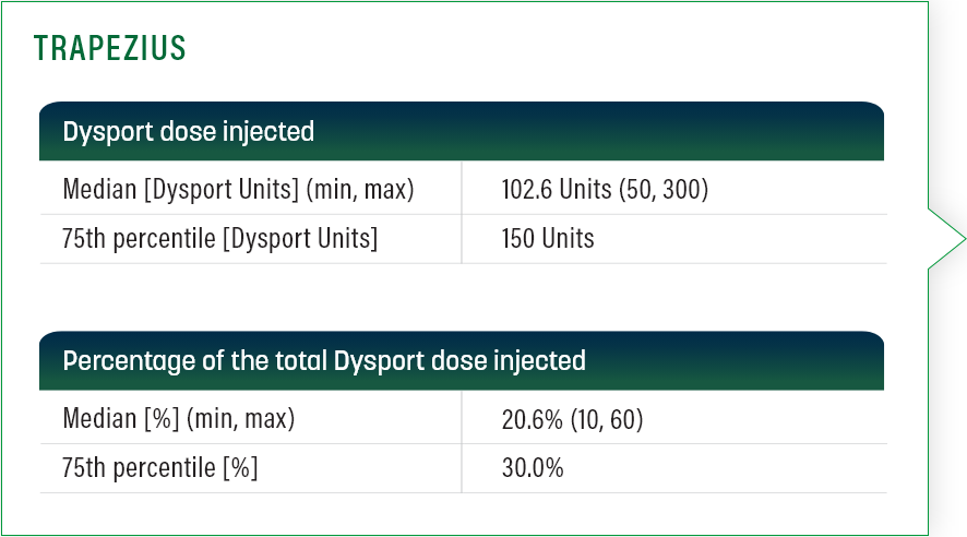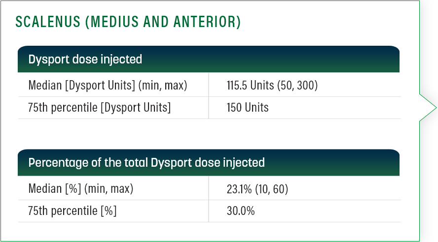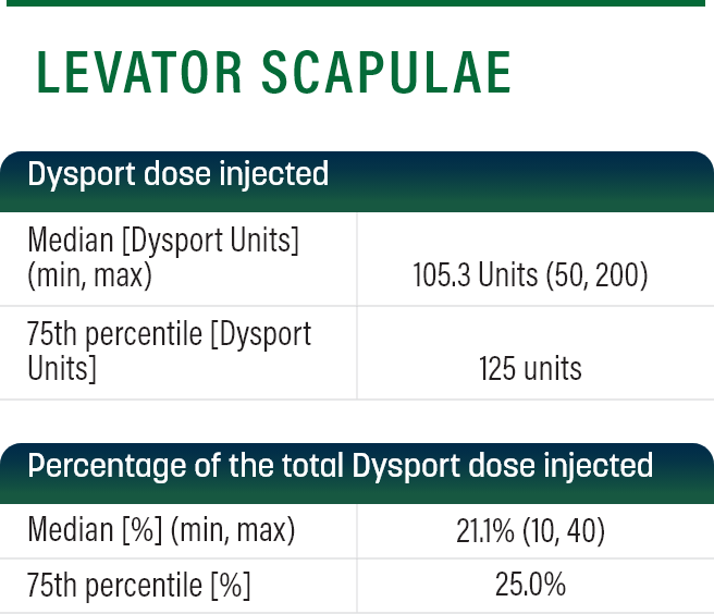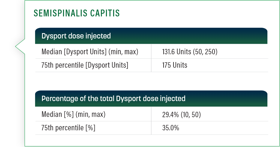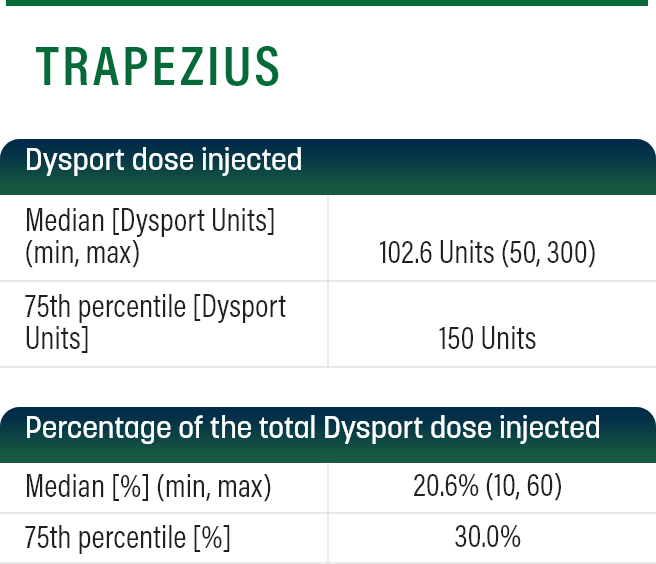 • The median dose in the sternocleidomastoid in clinical trials was Dysport 125 Units