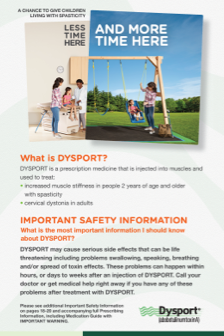 An educational brochure for parents/caregivers of children with pediatric spasticity to better understand spasticity, management options, and what to expect with Dysport.